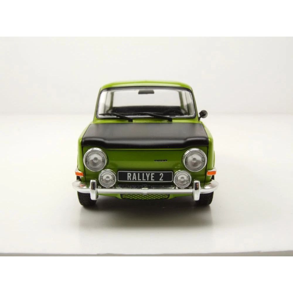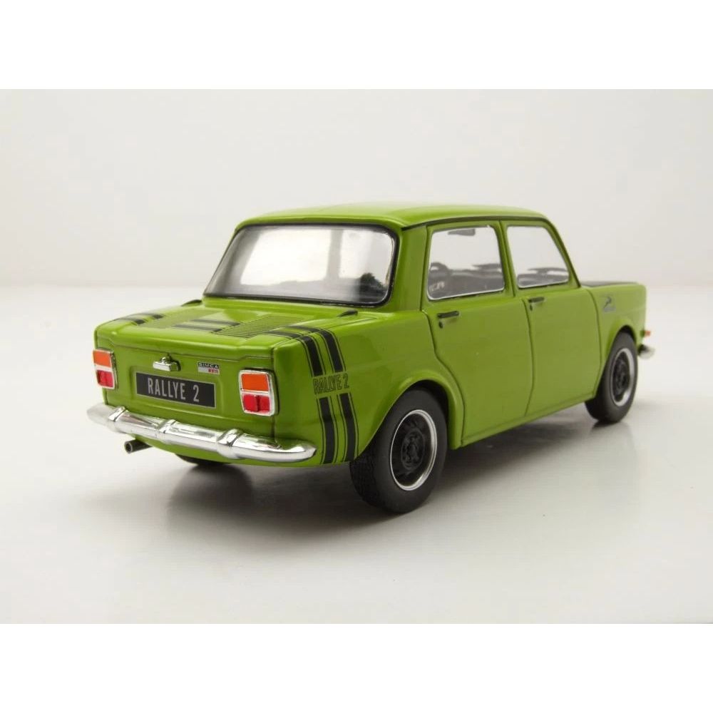 La réplique à l’échelle 1:24 de la Simca 1000 Rallye 2 de 1970, dans une combinaison éclatante de vert avec capot noir, rend hommage à l’une des compactes sportives les plus charismatiques sorties de France. Fabriquée par WhiteBox, cette miniature capture l’essence d’un modèle qui a marqué une époque pour les jeunes pilotes et les passionnés de conduite sportive.