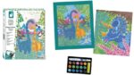 Contient 2 tableaux, un cadre en carton à peindre, une palette 15 couleurs de peinture aquarelle, une éponge, un pinceau à réservoir d’eau, un livret d’instructions. Matériau(x) utilisé(s) : Carton, Peinture, Plastique. Tranche d’âge recommandée : de 7 à 10 ans.