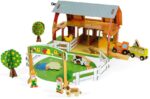 - UN MONDE D’IMAGINATION : Invente-toi des histoires passionnantes avec cette ferme à créer et ses nombreux accessoires, Construis ta structure (en carton rigide) avec l’aide d’un adulte et c’est parti pour des heures de jeu; Inclus : une grande ferme équipée d’une rampe d’accès à l’écurie, d’un porche et d’un enclos, de 6 barrières et de 10 accessoires en bois massif