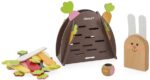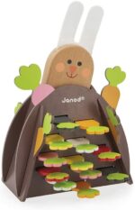 - CARACTERISTIQUES : Contient un support terrier, un lapin , 12 carottes de 6 couleurs différentes, un dé. Dimensions du jouet : Longueur 25 cm x Largeur 5,5 cm x Hauteur 25 cm. Matériau(x) utilisé(s) : Bois (Hêtre et Peuplier). Tranche d’âge recommandée : de 3 à 6 ans.
