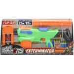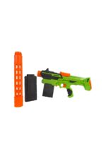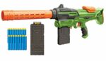Buzz Bee Toys Air Eradicator mousse dart blaster dispose d’un clip flip pour une action continue de sablage de fléchettes. Lorsqu’une fléchette de 10 comptes s’épuise, retournez-la pour un autre clip de fléchettes de 10 comptes. Assemblez votre blaster avec la vis dans le canon et le stock détachable lorsque vous êtes prêt à commencer votre mission. Tirez sur la glissière et vous êtes verrouillé, chargé et prêt à lancer une fléchette jusqu’à 72 pieds de distance. Recommandé pour les enfants de 6 ans et plus. L’article comprend un blaster à fléchettes, un clip à bascule, une crosse, un canon et 20 fléchettes longue distance.