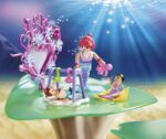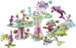 Rejoignez les sirènes dans leur paradis sous-marin. Ici, tout est plein de vie. Pendant que les bébés sont dans le landau, une petite sirène nage avec les dauphins. Après la promenade, les petits jouent avec l’arche de jeux pour bébés sur la plate-forme. Deux hippocampes nagent près d’eux et profitent de ce moment harmonieux. Contient trois sirènes, un enfant et deux bébés, deux hippocampes des dauphins et bien d’autres personnages et accessoires.