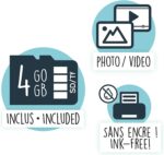 | Un appareil photoCapture tes plus beaux souvenirs ou prends-toi en selfie grâce à la dual lens avec cet appareil photo et son imprimante intégrée. Tu peux appliquer des filtres sur les photos ou activer le flash. Une micro carte SD de 4Go est fournie pour te permettre d’enregistrer tes photos et même faire des vidéos. | Impression instantanéeImprime directement tes photos en noir et blanc et sans encre grâce à la technologie thermique. 3 rouleaux de papier sont fournis. Avec les 2 rouleaux standards tu pourras imprimer 100 photos et avec le rouleau adhésif tu pourras imprimer 20 stickers. Dimension d’une photo: 7×5,5cm. | CaractéristiquesCaractéristiques : – Ecran couleur 2 pouces – Double objectifs – Zoom numérique x 2 – Flash d’appoint – Rechargeable (batterie lithium 3,7V) Inclus : tour de cou, câble USB-C pour chargement, 2 rouleaux de papier standard, 1 rouleau de papier adhésif, manuel d’utilisation. Des recharges de papier sont vendues séparément. |