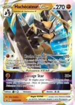 Affûtez vos stratégies avec Hachécateur-VSTAR ! Hachécateur-VSTAR se tranche un chemin hors de la nature et s’introduit dans votre deck à grands coups de coudes. Ce puissant Pokémon-VSTAR inflige des dégâts supplémentaires pour chaque Pokémon dans votre pile de défausse, la prudence est donc de mise pour votre adversaire. Retrouvez Hachécateur-VSTAR et Hachécateur-V sur des cartes promo brillantes pour le jeu, aux côtés d’une carte grand format, un pin’s brillant et des boosters pour affiner votre stratégie. Attention, Hachécateur-VSTAR va faire des ravages !