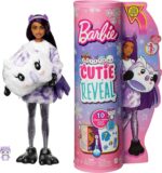 Les coffrets Poupée Barbie Cutie Reveal renferment 10 surprises et font de l’ouverture un moment absolument adorable ! Ouvrez le tube pour découvrir une poupée Barbie articulée portant un costume intégral d’animal en tissu moelleux, ainsi que des accessoires et des éléments qui se transforment.