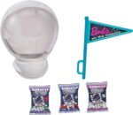 - La poupée Barbie est fournie avec un drapeau d’explorateur qu’elle peut tenir dans sa main et 3 paquets de nourriture pour astronaute (non comestible).