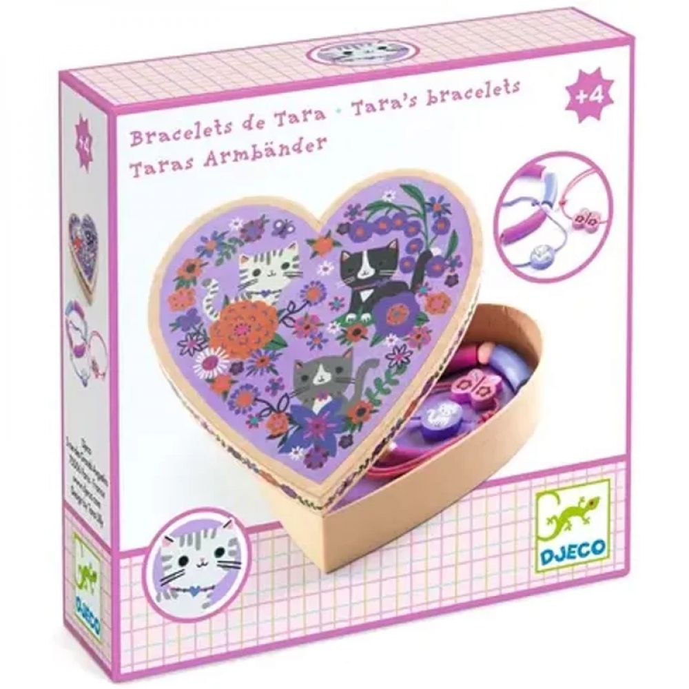 Découvrez les bracelets de Tara de Djeco, un coffret renfermant une jolie boîte en forme de cœur avec 3 adorables bracelets conçus pour les enfants dès 4 ans.