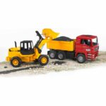 Le camion à benne basculante MAN TGA avec chargeuse à roues articulées FR130 garantit beaucoup de plaisir dans le jardin et dans la chambre d’enfant