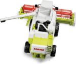 Le dispositif de coupe pendulaire mobile et amovible avec rouleau d’introduction de la moissonneuse-batteuse Claas Lexion 480 peut être rabattu vers le haut et bloqué. Le hache-paille est également rabattable vers le haut et le tuyau à grains est pivotant. Les clapets du réservoir de grains et la vanne déversoir peuvent être ouverts, le filtre de rotation orienté vers le haut et le dispositif de coupe pendulaire amovible resserré sur le chariot inclus. Des pneus profilés viennent compléter le tout.