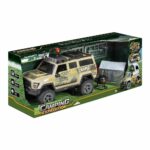 portes et coffre ouvrants, 4 sons différents (démarrage, accélération, klaxon, clignotant). Contient 1 tente, 1 personnage articulé, 1 barbecue (effet lumineux) et de nombreux accessoires. 29 cm. Alim. 5 piles LR44/AG13 fournies. Dès 3 ans.