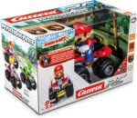 Mario s’élance en tout-terrain ! Avec son quad Carrera RC fulgurant à l’échelle 1:20, le héros du jeu vidéo culte et toi pouvez vous aventurer sur les pistes tout-terrain . Retrouve toute l’action des courses de Mario Kart dans ton écran et mets les gaz avec ton pilote préféré, que ce soit dans le jardin, au parc ou dans le bac à sable. Mario est une pièce de choix, même pour les collectionneurs. Ses gros pneus permettent au petit héros de s’aventurer par monts et par vaux. Grâce à la licence originale Nintendo, l’ancien plombier est identique à sa version numérique. Grâce à sa technologie de direction adaptée aux débutants, les coureurs dès 6 ans peuvent se lancer dans des courses amusantes avec le bolide de 19,4 cm de long. Avec sa vitesse de pointe de 9 km/h et son autonomie de 30 minutes, Mario peut parfaitement rouler en extérieur, tout comme participer à la coupe du salon. Il suffit ensuite de recharger la batterie lithium fer phosphate de 3,2 V et 700 mAh pendant 50 minutes à l’aide du câble USB.