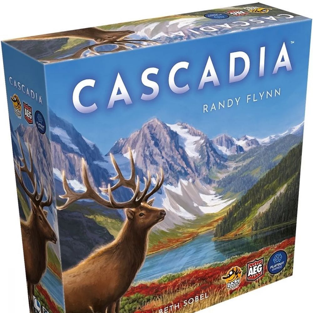Cascadia est un jeu à base d’assemblage de tuiles et de draft de jetons mettant en scène les habitats et la vie sauvage du Nord Ouest du Pacifique. Au fur et à mesure des tours, les joueurs construisent leur propre zone de terrain et la peuplent avec la faune disponible.