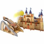 Taille catapulte: 18 * 11 * 9 cm. Portée: jusqu’à 3m. Notice illustrée en couleurs avec des activités sur le Moyen Âge.