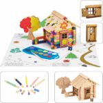 Pour apprendre à construire et décorer un chalet tout en bois, un vrai travail de petit charpentier plein de talent ! Tout est en bois … les madriers, les frontons, les faîtages, les tuiles et même la porte, la fenêtre et ses volets, le personnage, l’arbre … Chalet à Peindre – 85 pièces : Jeu de construction en bois naturel à peindre et à décorer au gré de son imagination, avec un tapis de jeu, un personnage, un arbre, une notice de montage et une palette de peinture – Valisette carton : 26 x 24 x 9 cm. A partir de 5 ans.