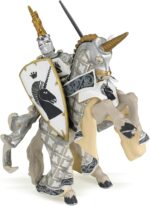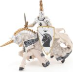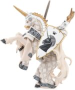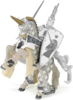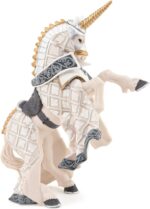Equipé de son armure et de son heaume à cimier, le maître des armes licorne est prêt à partir au combat! Quoi qu’il en coûte il défendra son royaume contre l’envahisseur et pour cela il sait qu’il peut compter sur son fidèle destrier. Les cors résonnent sur le champ de bataille, la clameur monte parmi les chevaliers, il est temps pour lui de se saisir de son épée et de son bouclier orné d’une licorne, symbole de puissance et de pureté, et de partir à l’attaque.
