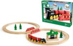 Promnenons-nous dans les boisPrenez le train en bois noir pour une aventure à travers la forêt. Conduisez votre train sur les rails en bois, traversez le pont et arrivez à la gare en bois. | Design scandinaveConçu avec des détails simples, ce coffret de train en bois est non seulement un jouet mais aussi une décoration élégante à avoir dans toutes les chambres d’enfant. | Compatible avec le BRIO WorldLa locomotive et les wagons sont équipés de connexions magnétiques BRIO pour un raccordement facile avec tous les autres trains du BRIO World. |
