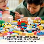 Les enfants, les adultes et les grands-parents peuvent profiter de nombreuses heures de plaisir et de nostalgie grâce à la boîte de jeu LEGO Classic 90 Ans de Jeu (11021). Elle célèbre l’histoire de la fabrication des LEGO, les jeux créatifs de notre enfance, à travers cet ensemble qui comprend un arc-en-ciel de briques LEGO colorées, 15 mini-reconstructions de jouets emblématiques de différentes années, plus des pièces supplémentaires pour la construction libre. Chacune des 15 mini-constructions est accompagnée de son propre guide de construction illustré étape par étape, de sorte que même les constructeurs débutants peuvent éprouver la fierté et la joie de construire leurs propres jouets LEGO. Vous reconstruirez avec un pur bonheur les jouets de votre enfance tels que le château-fort, le train jouet, etc. Les jeux de construction LEGO Classic mettent les idées et l’inspiration entre les mains des enfants, avec des modèles passionnants qui stimulent un jeu illimité et ouvert, ils aident les enfants à développer des compétences créatives qui dureront toute une vie. Ce jouet pour garçons et filles de 5 ans et plus LEGO Classic est un excellent cadeau d’anniversaire, ou cadeau pour toute occasion destiné aux constructeurs LEGO de tous âges.