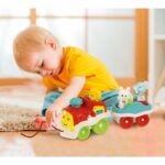 L’enfant pourra aussi s’amuser avec les activités mécaniques sur les wagons et tirer le train, développant ainsi sa coordination et sa motricité.
