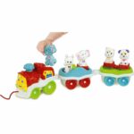 Jeu intéractif : En mettant les 5 animaux sur la locomotive et en appuyant sur la cheminée, l’enfant pourra écouter des phrases, le cri des animaux, des sons et des comptines amusantes : un contenu riche stimulant le langage.