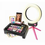 Cet atelier de maquillage complet est composé d’une palette de maquillage contenant 14 fards à paupières, 2 fards à joues, 1 poudre, 4 brillants à lèvres, 1 petite éponge, 1 pinceau et 3 applicateurs. Vous retrouverez, également, dans ce coffret, un anneau lumineux à LED avec trépied ainsi qu’un support pour smartphone, des cartes maquillage pour conseiller l’enfant et un manuel.