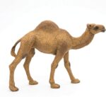 Le dromadaire appartient à lespèce des camélidés. A la différence de son cousin le chameau qui possède 2 bosses, le dromadaire nen possède quune. On retrouve ce mammifère domestique en Afrique du Nord, au Moyen-Orient et au proche Orient. Parfaitement adapté aux zones désertiques, le dromadaire peut résister aux chaleurs extrêmes et au manque deau. Il peut en puisant dans ses réserves ne pas boire pendant près dune semaine. Sa bosse qui contient des réserves de graisse sert également à réguler sa température. Utilisé par les hommes pour le transport de marchandises, le dromadaire fourni également un lait très riche, de la viande et sa toison est aussi utilisée pour fabriquer des couvertures.