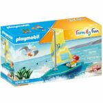 Les vacances, c’est le moment que toutes les familles attendent avec impatience ! Il est temps de se détendre en famille au PLAYMO Beach Hotel. Après le trajet en avion, c’est parti pour quelques semaines de vacances au bord de la mer. Les bungalows de l’hôtel sont superbes, ils possèdent une terrasse sur le toit ainsi qu’une piscine ! Je sens qu’on va bien s’amuser ! Cet enfant navigue comme un professionnel ! Aux commandes de son voilier, il se sent libre comme l’air. Contient un personnage.