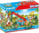 - Comprend une piscine, un toboggan ainsi qu’un grill lumineux (nécessite 2 piles 1,5V AAA non fournies).