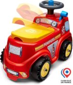 Le plus chouette des camions de pompiers de fabrication 100% française ! Avec sa jolie frimousse toute en rondeur et ses couleurs vives, il deviendra le moyen de locomotion favori de bébé pour filer d’une urgence à l’autre et se glisser dans la peau d’un vrai pompier. Super maniable grâce à son volant directionnel avec klaxon, votre enfant n’aura aucune difficulté à manoeuvrer à travers la maison et avertir de son arrivée tout en développant sa motricité globale. Bébé pourra prendre soin d’emporter avec lui tout le nécessaire d’un(e) petit(e) héro(ïne) grâce au coffre de rangement dissimulé sous l’assise. Et pour se l’approprier totalement, nous y avons ajouter une plaque d’immatriculation personnalisable, pour y écrire son prénom ou donner un surnom à son bolide préféré.