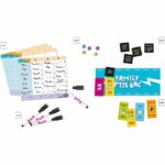 Contient 24 cartes contraintes recto verso, 40 cartes catégories recto verso, 26 jetons lettres, 1 plateau central, 4 plateaux ardoises, 4 feutres effaçables, 1 règle du jeu en français. Durée d’une partie : environ 20 minutes.