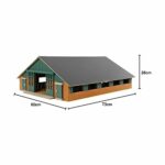 Cette étable en bois est idéale pour l’élevage des vaches ! Il s’agit d’une réplique très réaliste de ferme à l’échelle 1:32. Elle mesure 73 cm sur 60 cm et 26 cm de hauteur. Cette grande étable peut contenir de nombreuses vaches, elles sont séparées par des barrières cornadis pour bovins afin de faciliter le nourrissage à partir à l’allée centrale. Le toit de la ferme se soulève pour avoir une vue complète sur l’étable et le bétail.