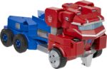 Les figurines Roll N’ Change reproduisent la magie des conversions Transformers comme aucune autre auparavant. Une conversion dans le feu de l’action ! Ce jouet Optimus Prime se convertit facilement du mode camion au mode robot. Il suffit de sortir son épée et de le faire rouler vers l’avant pour qu’il se convertisse au mode robot en un seul mouvement fluide ! On peut le reconvertir manuellement en mode véhicule en 12 étapes.