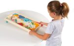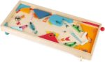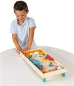 Le fun est toujours bien au rendez-vous avec sa petite clochette au sommet qu’il faudra viser, son hélice, ses élastiques et ses nombreux obstacles qu’il faudra gravir à l’aide de la bille en métal. Le lance-bille avec son ressort permettra de lancer la partie. Les « flippers », les petits leviers mécaniques pour rattraper la bille et viser, sont idéals pour travailler sa vivacité, ses réflexes et sa précision. Dès 5 ans, il comblera autant les petits que les grands.