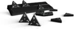 Triominos Onyx est unique avec sa boîte en métal épurée et ses triominos noirs aux chiffres gravés.