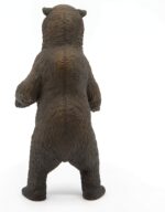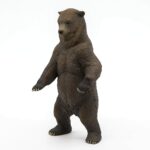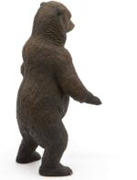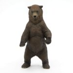 Originaire d’Amérique du Nord, ce mammifère est le plus imposant de son espèce après l’ours polaire. Sa robe brun foncé présente des nuances de blond, brun et noir, mais c’est l’extrémité grise de ses poils qui lui a valu son nom (de l’anglais « grizzled » qui signifie grisonnant). Cet omnivore vit en solitaire et se nourrit majoritairement de végétaux (baies, racines…). Néanmoins il lui arrive de dévorer des poissons, des fourmis, des abeilles ou de jeunes mammifères comme les wapitis. Afin de tenir tout l’hiver, le grizzli se nourrit tout l’été de façon intensive pour ensuite rejoindre sa tanière et entamer son hibernation de novembre à mars.
