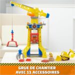 GRUE DE CHANTIER INTERACTIVE – Découvrez la véritable grue interactive de la série animée Ruben & Compagnie pour partir en mission construction ; De plus de 60 cm de haut, elle possède des jouets de construction amusants et des effets sonores et lumineux