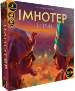 Imhotep duel est un jeu de stratégie pour deux joueurs. Néfertiti et Akhenaton s’affrontent dans un défi de bâtisseurs, afin de démontrer leur puissance. Le premier d’entre eux qui parviendra à achever la construction de quatre monuments sera couvert de gloire. Pour réaliser ces constructions, il faudra décharger astucieusement les navires arrivés au port avec les précieuses matières premières… et bloquer sournoisement les avancées de adversaires ! plus frontal que son grand frère (imhotep, les bâtisseurs d’égyptien), imhotep duel est un jeu dans lequel les coups bas sont vivement encouragés pour espérer l’emporter.