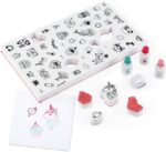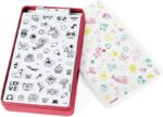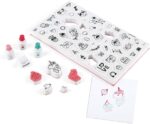 Pour les créatives et les imaginations débordantes, 50 tampons tout mignons pour s’exprimer en folie et embellir dessins, carnets et autres accessoires ! Choisis ta couleur et applique la directement sur tes tampons ! Jouet en mousse. 50 tampons et 1 crayon encreur 3 couleurs dans une boîte métal. Boîte cadeau avec fenêtre