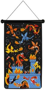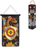 - 2-EN-1 : la cible recto-verso offre 2 options de jeu, sur le thème incontournable des chevaliers et dragons, D’un côté, un jeu standard avec une grosse cible centrale, de l’autre, une version plus corsée avec des cibles éparses sur des espaces réduits; des heures de jeu et de rires garanties