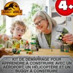 Apprenez la construction et développer l’imagination des enfants de 4 ans et plus passionnés par les dinosaures et les véhicules grâce à l’ensemble LEGO Jurassic World L’évasion du T. rex (76944). L’ensemble est incroyablement créatif et il contient de nombreux éléments pour des heures d’amusement de construction et de reproduction de scènes de Jurassic World. Ce jouet de dinosaures Jurassic World inclut un aéroport avec un héliport, un garage, un hélicoptère, un buggy, une clôture qui s’effondre et une figurine de dinosaure T. rex, du film Jurassic World. Ce set contient aussi 3 minifigurines – Owen Grady, Zia Rodriguez et un gardien – ainsi qu’un œuf de dinosaure et un talkie-walkie pour créer des histoires palpitantes. La barrière de l’aéroport peut être cassée par un dinosaure, rattrapez-le grâce à la voiture-jouet LEGO. Les instructions illustrées d’images simples sont parfaites pour les enfants qui apprennent à lire. Et grâce au guide numérique interactif disponible dans l’appli gratuite LEGO Instructions de montage, la construction est un jeu d’enfant. Les jouets LEGO 4 ans et plus sont le cadeau idéal pour propulser les jeunes enfants dans un univers imaginaire composé de leurs films, personnages TV et héros préférés. Contient 140 pièces