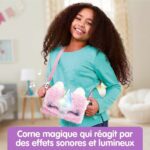 Kid’Couture Mon sac Magic’Fashion est un accessoire de mode unique et fait main, dédié aux enfants, filles et garçons, à partir de 6 ans, à coudre et à assembler soi-même ! À l’aide de tous les éléments contenus dans ce kit DIY, votre enfant réalise lui-même et en toute sécurité l’assemblage de son sac licorne, en suivant une à une les étapes illustrées dans le guide de création fourni. Il s’initie à la couture en apprenant à manipuler une aiguille et du fil, à suivre des consignes, pour obtenir un sac à main fait de ses propres mains ! Une fois le jouet assemblé, votre enfant détermine le style qu’il souhaite donner à sa licorne : il choisit les yeux, la mélodie, et les effets lumineux qu’il préfère. Les 3 modes de jeu (Lumières, Musical et Fashion Motion) transforment le sac licorne en un compagnon interactif avec lequel jouer en plus de le porter ! Ce coffret fashion contient 46 accessoires : 1 canevas en plastique, 2 bobines de fils, 3 aiguilles en plastique sans danger pour les enfants, 1 corne lumineuse et interactive, 2 paires d’yeux pailletés, 1 bandoulière ajustable, 2 anneaux, 1 fermoir avant, 2 mécanismes du fermoir, 1 tournevis, 21 vis roses et blanches, 6 boutons de fixation à clipser, 1 compartiment à piles, 1 câble et 1 guide de création. 11 mélodies et plus de 10 effets lumineux magiques. Existe aussi en version Chat. Arrêt automatique du jouet pour préserver la durée de vie des piles. Fonctionne avec 2 piles LR6-AA non incluses. Cadeau enfant idéal dès 6 ans, pour fille et garçon.