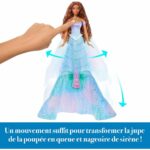 Replongez dans l’univers de La Petite Sirène à l’occasion de la sortie de l’adaptation en prises de vue réelles du célèbre film Disney avec cette poupée Ariel Transformable. Regardez-la se transformer d’humaine à sirène en appuyant simplement sur son pendentif coquillage Sa robe bleue caractéristique s’ouvre pour laisser apparaître une magnifique queue de sirène multicolore. Cette poupée articulée possède une longue chevelure pour que les enfants puissent la coiffer à volonté. Les fans peuvent collectionner toutes les poupées La Petite Sirène pour créer leurs propres aventures aquatiques ou terrestres. Chaque poupée est vendue séparément. Certains produits peuvent ne pas être commercialisés. La poupée ne tient pas debout toute seule. Les couleurs et les décorations peuvent varier.