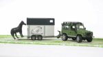 - Le Land Rover Defender avec van et cheval de la société bruder fait briller les yeux des enfants