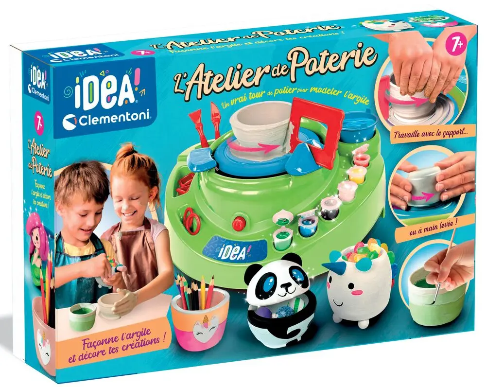 Laisse ta créativité prendre forme en réalisant de tes mains de superbes créations en argile. • Ce tour de potier électrique est fourni avec des moules, de la peinture et de nombreux outils. • Les moules permettront aux débutants de faire leurs premières créations facilement avant de s’essayer à la technique traditionnelle de modelage. • Le coffret contient également un bac de réserve d’eau pour laisser l’argile humide durant le modelage et faciliter le travail créatif.