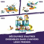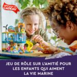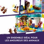 Le centre de sauvetage en mer LEGO Friends va inspirer les amis des animaux dès 7 ans! Ce set inclut 3 mini-poupées, 2 loutres de mer, un hippocampe, une tortue marine et de nombreux accessoires. Les enfants peuvent revenir au ponton en jet-ski, laver et nourrir les loutres au centre ou leur faire passer des radios avant de les guider vers la zone de convalescence. Lorsqu’elles seront guéries, elles retourneront nager dans la mer. Les accessoires incluent un gilet de sauvetage, un biberon, un talkie-walkie, un coffre, un appareil photo, un ordinateur, un microscope, une seringue et un appareil de radiographie.