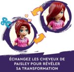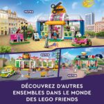 Les enfants adoreront explorer le jouet de coiffure LEGO Friends Le Salon de Coiffure (41743) avec Paisley et Olly. Ce jouet créatif pour les enfants de 6 ans et plus raconte l’histoire de la timide Paisley, qui s’inquiète de se faire couper les cheveux, car elle ne sait pas quel style lui conviendra. Mais son gentil ami Olly est là pour la rassurer. Ce jouet pour enfants créatifs comprend les mini-poupées Paisley, Olly et Nadia, les personnages de la série LEGO Friends 2023. Les enfants peuvent jouer l’aventure dans Heartlake City alors que les amis se rendent au salon de coiffure de Nadia sur le scooter jouet d’Olly pour créer le nouveau look de Paisley. Il y a beaucoup à découvrir, avec des zones de lavage et de coiffage à l’intérieur du salon et une machine à gommes, ainsi que de nombreux accessoires de coiffure. À l’extérieur du salon, il y a une aire de stationnement pour les scooters et un banc. Lorsque Paisley est prête, les enfants peuvent échanger la perruque et l’expression du visage pour révéler son nouveau style. Pour renforcer le plaisir, les enfants peuvent profiter d’une aventure de construction facile et intuitive avec l’application LEGO Builder. Ils peuvent y zoomer et faire pivoter des modèles en 3D, sauvegarder des ensembles et suivre leurs progrès. L’univers LEGO Friends s’est étendu pour présenter la nouvelle génération de Heartlake City et de nouveaux lieux pour inspirer des aventures plus créatives. Cet ensemble de coiffure en jouet LEGO Friends constitue un cadeau d’anniversaire amusant ou un cadeau pour n’importe quel autre jour pour les enfants de 6 ans et plus qui aimeraient être créatifs. Le salon de coiffure mesure plus de 14 cm de haut, 25 cm de large et 9 cm de profondeur Contient 401 pièces