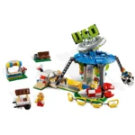 - Ce jouet de construction inclut également un kiosque à billets, un banc et un chariot à glaces avec des glaces à construire.