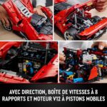 De la série LEGO Technic Ultimate Car Concept vient une maquette de voiture à construire pour les adultes fans de Ferrari. Recréez tous les détails de la Ferrari Daytona SP3 avec ce modèle réduit de voiture de course avancée LEGO Technic Ferrari Daytona SP3 (42143) pour adultes. Avec cet ensemble de voiture modélisme de collection, vous pouvez entrer dans une zone de pleine conscience en recréant les caractéristiques du modèle réduit de la Ferrari Daytona SP3 en rouge classique avec des alliages peints en chrome. Placez-la ensuite en exposition pour admirer l’arrière iconique et les lignes courbes qui rendent ce modèle LEGO Technic voiture à l’échelle 1:8 si spécial. Avec un haut niveau de fonctionnalité, ce modèle est une réplique de la vraie Ferrari. Les caractéristiques comprennent la direction, une boîte de vitesses séquentielle à 8 rapports avec changement de palettes et un moteur V12 avec des pistons mobiles. Tout comme la supercar originale, ce kit de construction Ferrari de collection comporte des portes papillon qui s’ouvrent. Soulevez le capot pour retrouver votre numéro de série unique et débloquer du contenu spécial en ligne. De la série LEGO Technic Ultimate Car Concept – une collection créée spécialement pour les adultes. Célébrant certains des véhicules les plus exclusifs au monde, ces constructions LEGO pour adultes constituent un cadeau de choix pour les fans de voitures. Contient 3 778 pièces