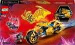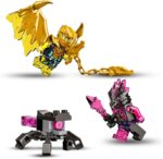 L’ensemble LEGO NINJAGO La Moto Dragon d’Or de Jay (71768) comprend tout ce dont un fan de ninja âgé de 7 ans et plus a besoin pour recréer les scènes passionnantes de la série télévisée NINJAGO : Cristallisés. Cette superbe moto jouet pour enfant NINJAGO comporte une tête de dragon dorée avec une bouche mobile et des panneaux latéraux dorés, 2 grands pneus et une selle. Cet ensemble de moto ninja comprend 2 minifigurines LEGO NINJAGO, Jay Golden Dragon avec sa puissante arme élémentaire dorée nunchaku et un ensemble d’ailes de dragon dorées à pointes, un Guerrier de pierre venge équipé d’une épée jouet, accompagné d’une figurine d’araignée de cristal. Les enfants chevauchent la moto Golden Dragon de Jay, prêts à affronter la dangereuse araignée de cristal et le Guerrier de pierre venge armé d’une épée. Avec le pouvoir du Dragon d’Or sur cette moto jouet géniale, les enfants peuvent vaincre leurs ennemis et récupérer l’arme élémentaire de Jay pour s’assurer que le bien triomphe du mal et que NINJAGO City reste libre ! Les jouets créatifs LEGO NINJAGO avec Jay encouragent le développement de l’imagination et de la fantaisie chez les enfants, les emmenant dans un monde d’action aux côtés des personnages de la série télévisée populaire pour combattre les forces du mal avec une collection fantastique de jeux comprenant des méchas, des voitures, des jets, des dragons et des temples. Cet ensemble est une fabuleuse idée de cadeau pour un anniversaire, Noël ou toute autre occasion, pour les enfants de 7 ans et plus qui sont passionnés par les motos jouets, les figurines de dragon et les ninjas. Contient 137 pièces