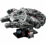 Idéal pour décorer une pièce – Le support à construire, qui arbore un écriteau et une brique spéciale 25e anniversaire de LEGO Star Wars, permet d’exposer le Millennium Falcon à l’oblique