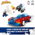Jouet d’action à construire et à jouer : contient une voiture de jouet à construire, des armes, des accessoires, des figurines LEGO Marvel du super-héros Spider-Man et de la super-héroïne, ainsi qu’une figurine du Bouffon Vert Venomisé